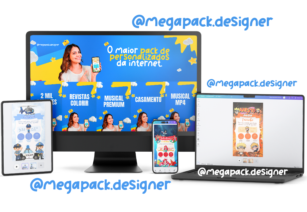 O MegaPack oferece uma plataforma exclusiva e compatível com seu celular, tablet ou computador. Personalize no Canva de forma simples e rápida, onde e quando quiser!